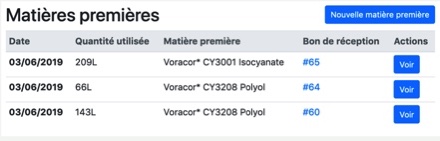 Le bon de réception matière première relie les chantiers où la matière première provenant de cette livraison ont été utilisé au certificat d’analyse produit par nos fournisseurs.