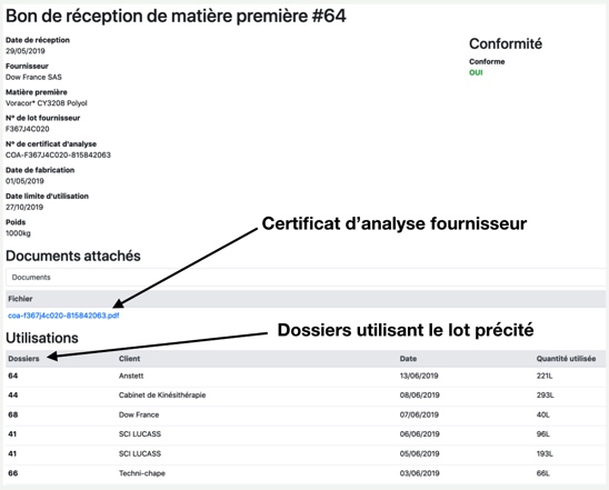 Il permet également de s’assurer que la matière première chargée pour être mise en oeuvre est conforme. L’établissement notamment d’une date limite d’utilisation permet d’empêcher le chargement d’une matière première périmée.