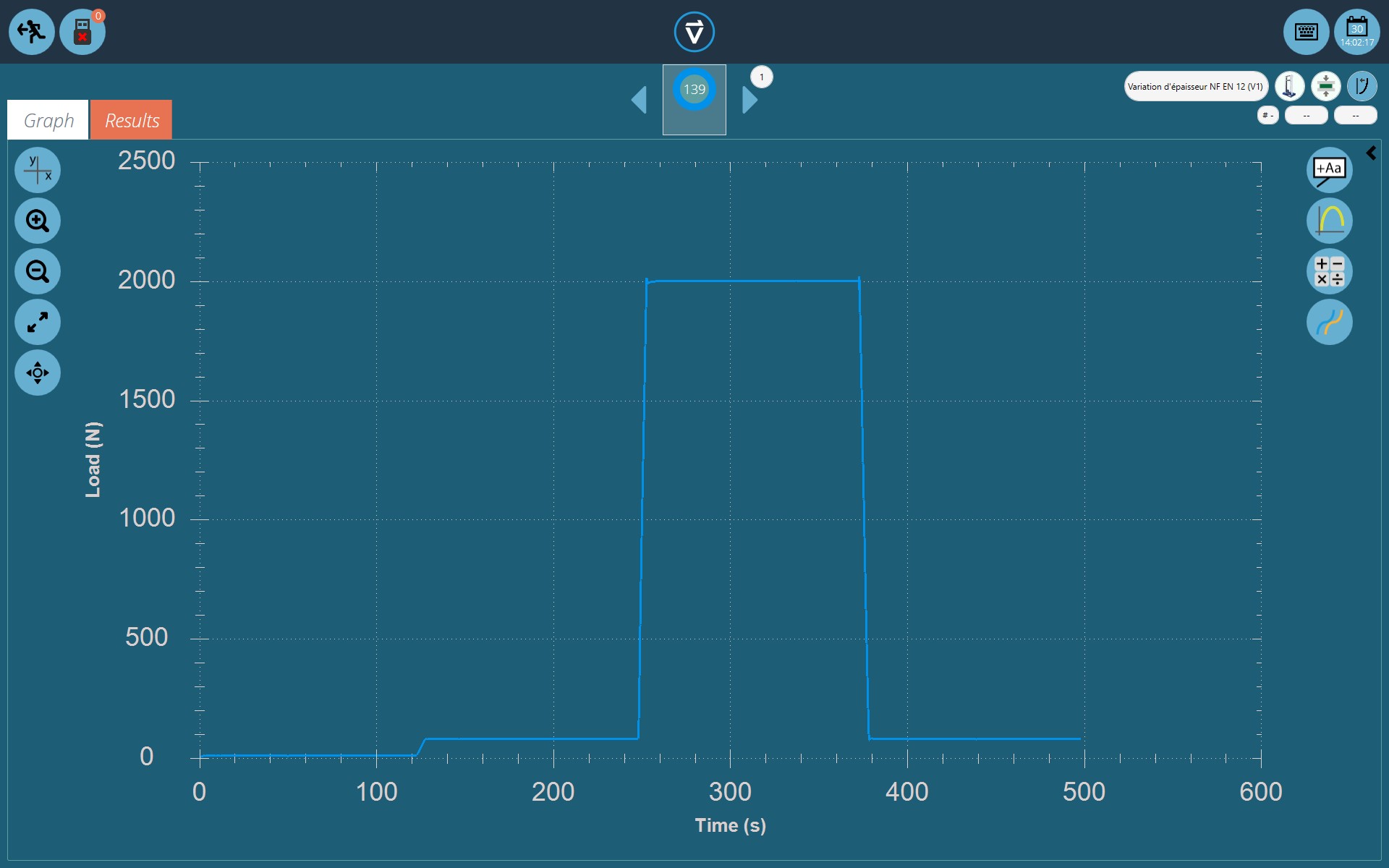 Une série de forces est appliquée sur l’éprouvette pendant 120 secondes chacunes : 250 puis 2000, 50 000 et enfin 2000 Pa.